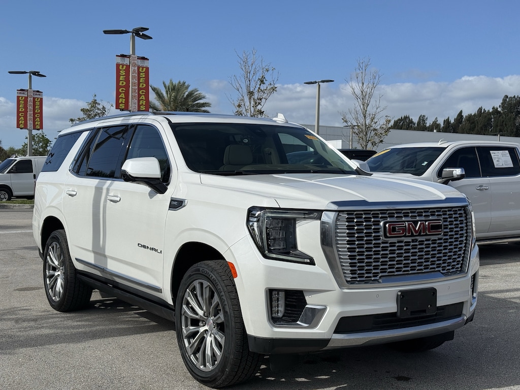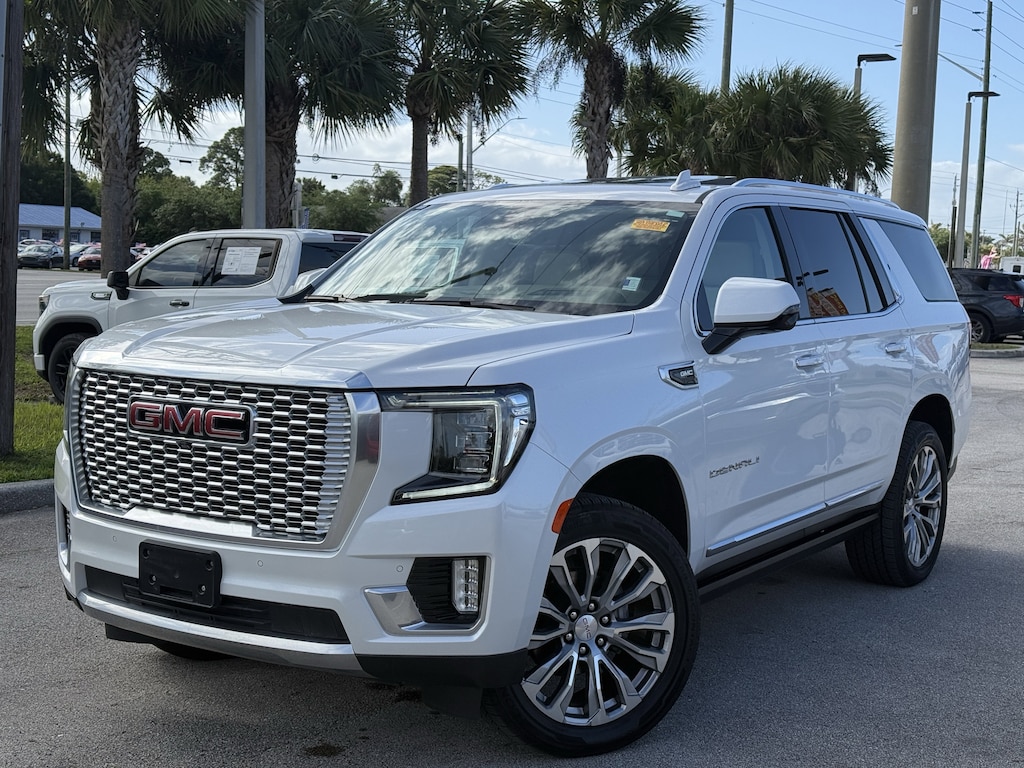 SAVE NOW DURING GARBER PRE-OWNED Sales Event! Clean CARFAX. CLEAN CARFAX, 3RD ROW SEATING, BACKUP CAMERA, BLIND SPOT MONITOR, BLUETOOTH W/ TECH STREAMING, HEATED & COOLED LEATHER SEATS, LEATHER SEATS, PANORAMIC MOONROOF, POWER LIFTGATE, TRAILER TOW, 4X4, REMOTE KEYLESS ENTRY, PUSH BUTTON START, ANDROID AUTO, APPLE CAR PLAY, FRONT COLLISION WARNING, LANE KEEP ASSIST, REMOTE START, LIFETIME POWERTRAIN WARRANTY, Yukon Denali, 4D Sport Utility, EcoTec3 6.2L V8, 10-Speed Automatic with Overdrive, 4WD, White Frost Tricoat, Teak/Light Shale Leather, 4-Wheel Disc Brakes, ABS brakes, Adaptive Cruise Control, Advanced Security Package, Advanced Technology Package, Air Ride Adaptive Suspension, Denali Ultimate Package (DISC), Dual front impact airbags, Dual front side impact airbags, Dual-Pane Panoramic Power Sunroof, Electronic Limited Slip Differential (eLSD), Enhanced Automatic Emergency Braking, Glass Breakage Sensor, Inside Rearview Auto-Dimming Rear Camera Mirror, Power-Retractable Assist Steps, Premium Capability Package w/Active Response 4WD, Rear Camera Mirror Washer, Rear Seat Media System (DISC), Reverse Automatic Braking, Theft-Deterrent Alarm System, Vehicle Inclination Sensor, Vehicle Interior Movement Sensor.