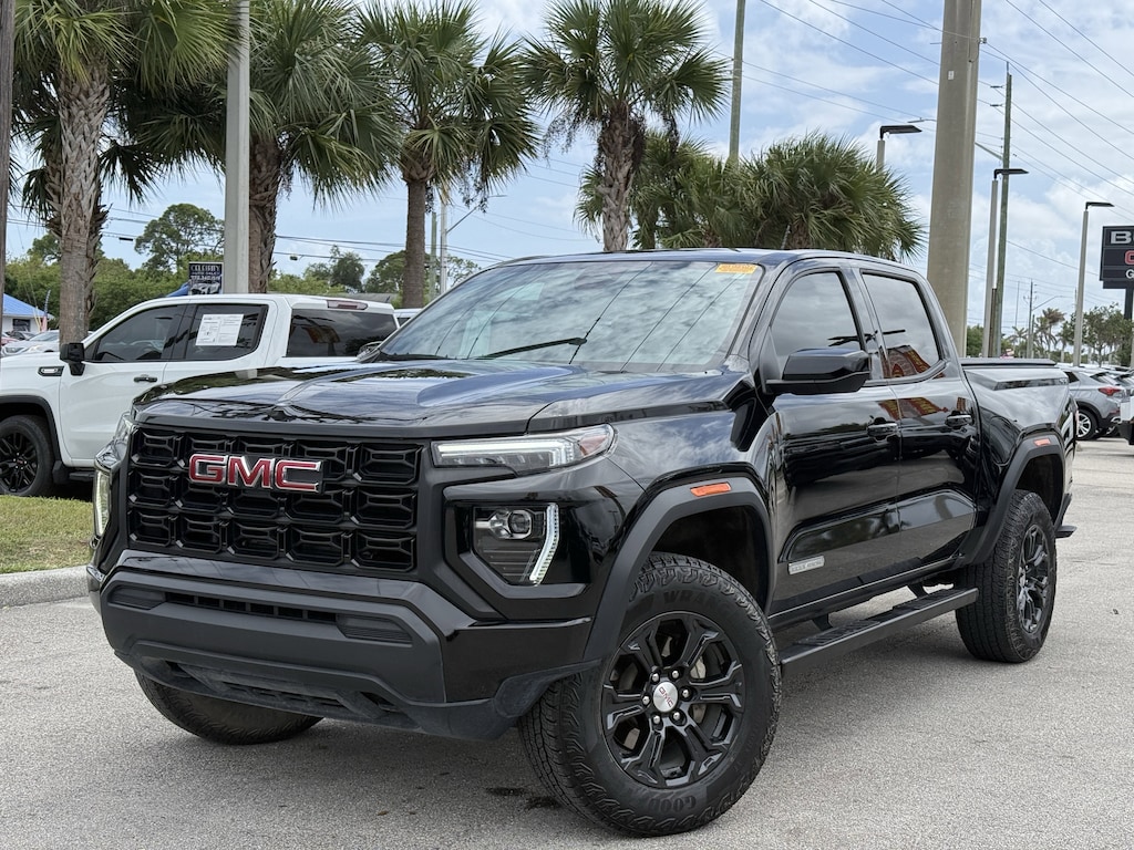 SAVE NOW DURING GARBER PRE-OWNED Sales Event! CARFAX One-Owner. Clean CARFAX. CLEAN CARFAX/1 OWNER, BACKUP CAMERA, BED LINER, BLUETOOTH W/ TECH STREAMING, TRAILER TOW, 4X4, PUSH BUTTON START, ANDROID AUTO, APPLE CAR PLAY, FRONT COLLISION WARNING, REMOTE START, LIFETIME POWERTRAIN WARRANTY, Canyon Elevation LIFETIME POWER TRAIN WARRANTY, 4D Crew Cab, 2.7L I4 Turbocharged DOHC 16V LEV3-SULEV30 310hp, 8-Speed Automatic, 4WD, Onyx Black, Black Cloth, 4-Wheel Disc Brakes, ABS brakes, Automatic Emergency Braking, Canyon Pro Safety, Dual front impact airbags, Dual front side impact airbags, Following Distance Indicator, Forward Collision Alert, Front Pedestrian & Bicyclist Braking, Integrated Trailer Brake Controller, IntelliBeam Automatic High Beam On/Off, Lane Keep Assist w/Lane Departure Warning, Preferred Equipment Group 4VL, Trailering Package, Wheels: 18" x 8.5" Dark Gray Painted Aluminum.
