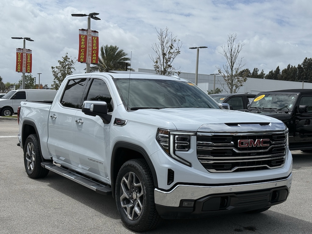 SAVE NOW DURING GARBER PRE-OWNED Sales Event! CARFAX One-Owner. Clean CARFAX. CLEAN CARFAX/1 OWNER, CARFAX 1 OWNER, ADAPTIVE CRUISE CONTROL, BACKUP CAMERA, BED LINER, BLIND SPOT MONITOR, BLUETOOTH W/ TECH STREAMING, HEATED LEATHER SEATS, LEATHER SEATS, POWER LIFTGATE, TRAILER TOW, 4X4, REMOTE KEYLESS ENTRY, PUSH BUTTON START, ANDROID AUTO, APPLE CAR PLAY, FRONT COLLISION WARNING, LANE KEEP ASSIST, REMOTE START, BOSE AUDIO, LIFETIME POWERTRAIN WARRANTY, Sierra 1500 SLT, 4D Crew Cab, EcoTec3 6.2L V8, 10-Speed Automatic, 4WD, Glacier White Tricoat, Black Leather, 10-Way Power Driver Seat Adjuster with Lumbar, 10-Way Power Passenger Seat Adjuster with Lumbar, 120-Volt Bed Mounted Power Outlet, 120-Volt Interior Power Outlet, 170 Amp Alternator, 2 Charge/Data USB Ports, 2 Charge/Data USB Ports Inside Center Console, 2 Type-C Charge-Only Rear USB Ports, 20" Polished Aluminum Wheels, 6-Speaker Audio System Feature, Adaptive Cruise Control, All-Weather Floor Liner, Auto-Locking Rear Differential, Auxiliary External Transmission Oil Cooler, Chrome Header and Chrome Grille Insert Bars, Chrome Wheel to Wheel Assist Steps, Color-Keyed Carpeting Floor Covering, Deep-Tinted Glass, Driver Memory, Dual Exhaust System, Electric Rear-Window Defogger, Electronic Precision Shift, Floor-Mounted Center Console, Front 40/20/40 Split-Bench Seat, Front Bucket Seats, Front Frame-Mounted Black Recovery Hooks, Front Rain-Sensing Wipers, HD Rear Vision Camera, HD Surround Vision, Heated 2nd Row Outboard Seats, Heated Driver and Front Outboard Passenger Seating, Heavy-Duty Air Filter, High Capacity Suspension Package, Hill Descent Control, Hitch Guidance, Hitch View, in-Vehicle Trailering System App, Integrated Trailer Brake Controller, Keyless Open and Start, LED Cargo Area Lighting, Manual Tilt-Wheel and Telescoping Steering Column, Off-Road Suspension, OnStar Services Capable, Perimeter Lighting, Power Door Locks, Power Front Passenger Windows with Express Up/Down, Power Front Windows with Driver Express Up/Down, Power Rake and Telescoping Steering Column, Power Rear Windows with Express Down, Power Sliding Rear Window with Rear Defogger, Preferred Equipment Group 4SA, Premium Bose 7-Speaker Sound System, ProGrade Trailering System, Push Button Start, Rear Cross Traffic Braking, Rear Pedestrian Detection, Rear Wheelhouse Liners, Remote Vehicle Starter System, Safety Alert Seat, Sierra Safety Plus Package, SiriusXM with 360L Trial Subscription, SLT Convenience Package, SLT Preferred Package, SLT Premium Package, Spray-on Pickup Bedliner with GMC Logo, Standard Suspension Package, Steering Wheel Audio Controls, Theft Deterrent System (unauthorized Entry), Trailer Camera Provisions, Trailer Side Blind Zone Alert, Trailering Package, Ultrasonic Front and Rear Park Assist, Universal Home Remote, Ventilated Driver and Front Passenger Seats, Wheels: 18" x 8.5" 6-Spoke Machined Aluminum, Wheels: 20" Polished Aluminum with RFX, Wi-Fi Hotspot Capable, Wireless Charging, X31 Hard Badge, X31 Off-Road and Protection Package, X31 Off-Road Package.