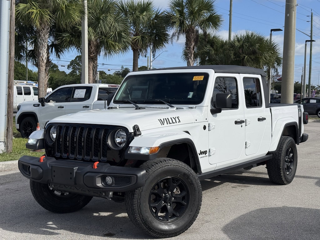 SAVE NOW DURING GARBER PRE-OWNED Sales Event! Clean CARFAX. CLEAN CARFAX, BACKUP CAMERA, BED LINER, TRAILER TOW, 4X4, PUSH BUTTON START, ANDROID AUTO, APPLE CAR PLAY, REMOTE START, DUAL ZONE AUTOMATIC CLIMATE CONTROL, Gladiator Willys, 4D Crew Cab, 3.6L V6 24V VVT, 8-Speed Automatic, 4WD, Bright White Clearcoat, Black Cloth, 1-Year SiriusXM Guardian Trial, 110 mph Vehicle Max Speed Calibration, 115V Auxiliary Power Outlet, 220 Amp Alternator, 240 Amp Alternator, 3.73 Rear Axle Ratio, 4-Wheel Disc Brakes, 4-Wheel Drive Decal, 400W Inverter, 5-Year SiriusXM Traffic Service, 5-Year SiriusXM Travel Link Service, 8 Speakers, 8.4" Radio & Premium Audio Group, 8.4" Touchscreen Display, 97 mph Maximum Speed Calibration, ABS brakes, Air Conditioning, Air Conditioning w/Auto Temperature Control, Alpine Premium Audio System, AM/FM radio, Anti-Lock 4-Wheel Disc Heavy Duty Brakes, Anti-Spin Differential Rear Axle, Apple CarPlay, Auto-Dimming Rear-View Mirror, Automatic Headlamps, Black Grille, Black Trail Rated Badge, Body Color Fender Flares (2-Piece), Brake assist, Bridgestone Brand Tires, Class IV Hitch Receiver, Cloth Low-Back Bucket Seats, Compass, Console Bin Task Light, Convenience Group, Daytime Running Lamp System, Deep Tint Sunscreen Windows, Delay-off headlights, Driver door bin, Driver vanity mirror, Dual front impact airbags, Dual front side impact airbags, Electronic Stability Control, Emergency/Assistance Call, For Details, Visit DriveUconnect.com, For More Info, Call 800-643-2112, Front 1-Touch Down Power Windows, Front anti-roll bar, Front Bucket Seats, Front Center Armrest w/Storage, Front fog lights, Front Heavy Duty Red Accent Shock Absorbers, Front reading lights, Google Android Auto, GPS Antenna Input, GPS Navigation, HD Radio, Heavy-Duty Engine Cooling, Integrated Center Stack Radio, Integrated roll-over protection, Leather Wrapped Steering Wheel, Low tire pressure warning, Media Hub w/2 Charge Only USBs, Mold In Color Bumper w/Gloss Black, MOPAR All-Weather Floor Mats (DISC), MOPAR Spray In Bedliner, Normal Duty Suspension, Occupant sensing airbag, Off-Road Info Pages, Outside temperature display, ParkView Rear Back-Up Camera, Passenger door bin, Passenger vanity mirror, Power Heated Mirrors, Power steering, Power Tailgate Lock, Protection Sill Rails, Quick Order Package 24W Willys, Radio data system, Radio: Uconnect 3 w/5" Display, Radio: Uconnect 4C Nav w/8.4" Display, Rear anti-roll bar, Rear Heavy Duty Red Accent Shock Absorbers, Rear reading lights, Remote Keyless Entry, Security Alarm, SiriusXM Radio Service, SiriusXM Satellite Radio, SiriusXM Traffic Plus, SiriusXM Travel Link, Speed control, Speed Sensitive Power Locks, Split folding rear seat, Steering wheel mounted audio controls, Sun Visors w/Illuminated Vanity Mirrors, Tachometer, Telescoping steering wheel, Tilt steering wheel, Traction control, Trailer Hitch Zoom, Trailer Tow Package, Trip computer, USB Host Flip, Variably intermittent wipers, Wheels: 17" x 7.5" Black Aluminum w/Gray Pad, Wheels: 17" x 7.5" Black Steel Styled, Willys, Willys Hood Decal.