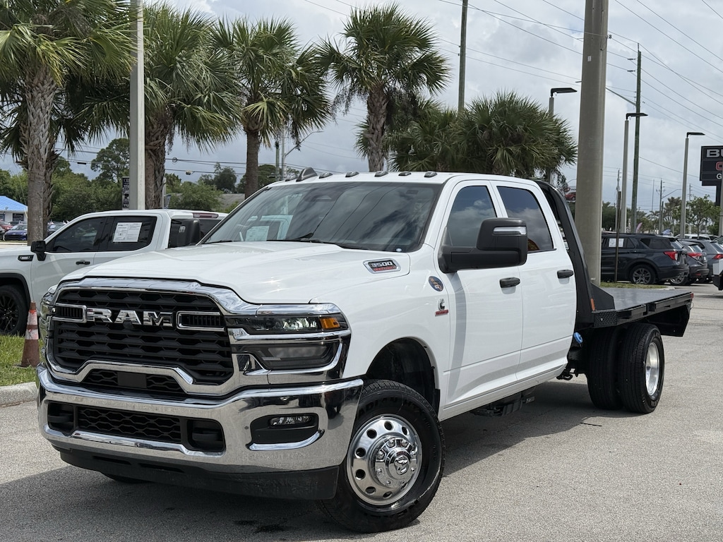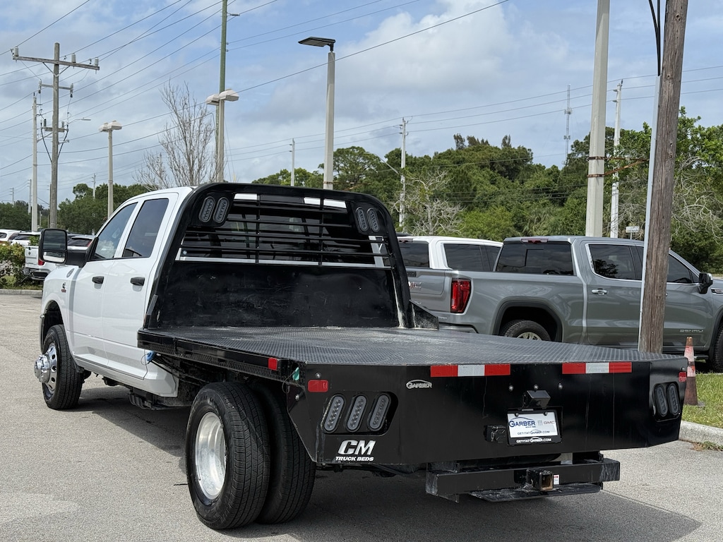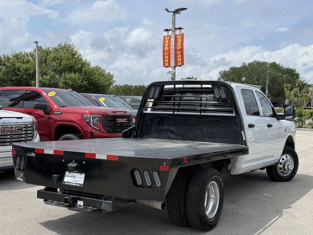 SAVE NOW DURING GARBER PRE-OWNED Sales Event! CARFAX One-Owner. CLEAN CARFAX/1 OWNER, ADAPTIVE CRUISE CONTROL, BLUETOOTH W/ TECH STREAMING, TRAILER TOW, 4X4, PUSH BUTTON START, ANDROID AUTO, APPLE CAR PLAY, FRONT COLLISION WARNING, LIFETIME POWERTRAIN WARRANTY, 3500 Tradesman Flat Bed, 4D Crew Cab, Cummins 6.7L I6 Turbodiesel, 8-Speed Automatic, 4WD, Bright White Clearcoat, Diesel Gray/Black Vinyl, 11.50" Dual Wheels Rear Axle, 2 Way Rear Headrest Seat, 3.42 Axle Ratio, 4-Wheel Disc Brakes, 40/20/40 Split Bench Seat, 4G LTE Wi-Fi Hot Spot, 6 Speakers, 6000# Front Axle w/Hub Ext, ABS brakes, Air Conditioning, AM/FM radio: SiriusXM, Black Exterior Mirrors, Black Power Heated Fold Telescope Mirrors, Black Wheel Center Hub, Bright Front Bumper, Center Hub, Chrome Appearance Group, Chrome Grille Surround, Compass, Connectivity - US/Canada, Delay-off headlights, Driver door bin, Dual front impact airbags, Dual Rear Wheels, Electronic Stability Control, Emergency communication system: RAM Connect, Exterior Mirrors Courtesy Lamps, Exterior Mirrors w/Heating Element, Exterior Mirrors w/Supplemental Signals, For Details, Visit DriveUconnect.com, Front anti-roll bar, Front Armrest w/Cupholders, Front Center Armrest w/Storage, Front fog lights, Front License Plate Bracket, Front reading lights, Fully automatic headlights, Global Telematics Box Module (TBM), Google Android Auto, GPS Antenna Input, HD Vinyl 40/20/40 Split Bench Seat, Illuminated entry, Integrated Voice Command w/Bluetooth, Manual Adjust 4-Way Driver Seat, Manual Adjust 4-Way Front Passenger Seat, Manual Folding Exterior Mirrors, Manual Telescoping Mirrors, Matte Black Mesh Grille w/Chrome, Mirror Running Lights, Occupant sensing airbag, Outside temperature display, Overhead console, Panic alarm, ParkView Rear Back-Up Camera, Passenger door bin, Passenger vanity mirror, Power Adjust Mirrors, Power steering, Power windows, Power-Adjustable Convex Aux Mirrors, Quick Order Package 25A Tradesman, Radio data system, Radio: Uconnect 5 w/8.4" Display, Rear anti-roll bar, Rear Backup Alarm, Rear Folding Seat, Rear Window Defroster, Remote keyless entry, Remote USB Port - Charge Only, Speed control, Storage Tray, Tachometer, Temperature & Compass Gauge, Tilt steering wheel, Traction control, Tradesman Level 1 Equipment Group, Trailer Brake Control, Trailer Light Check, Variably intermittent wipers, Voltmeter, Wheels: 17" x 6.0" Polished Aluminum, Wheels: 18" x 8.0" Polished Aluminum, Wheels: 18" x 8.0" Steel Painted.